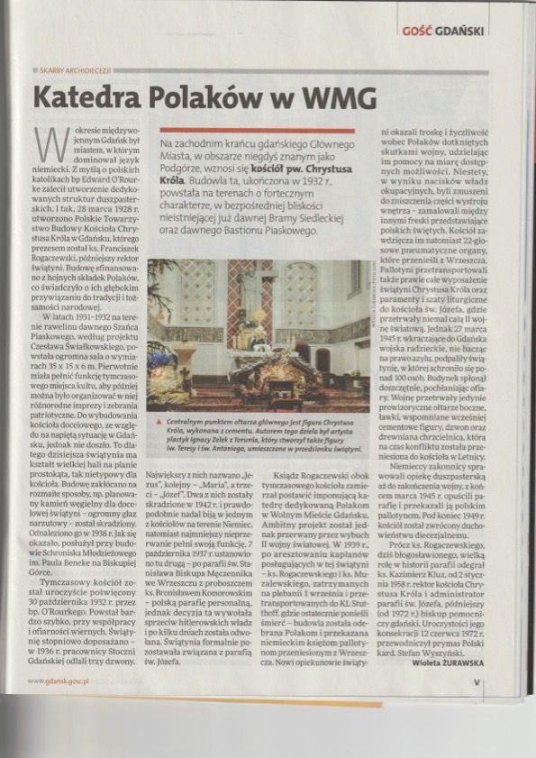 Zachęcamy do przeczytania artykułu dotyczącego naszego kościoła parafialnego znajdującego się w najnowszym numerze Gościa Niedzielengo (dodatek Gdański)