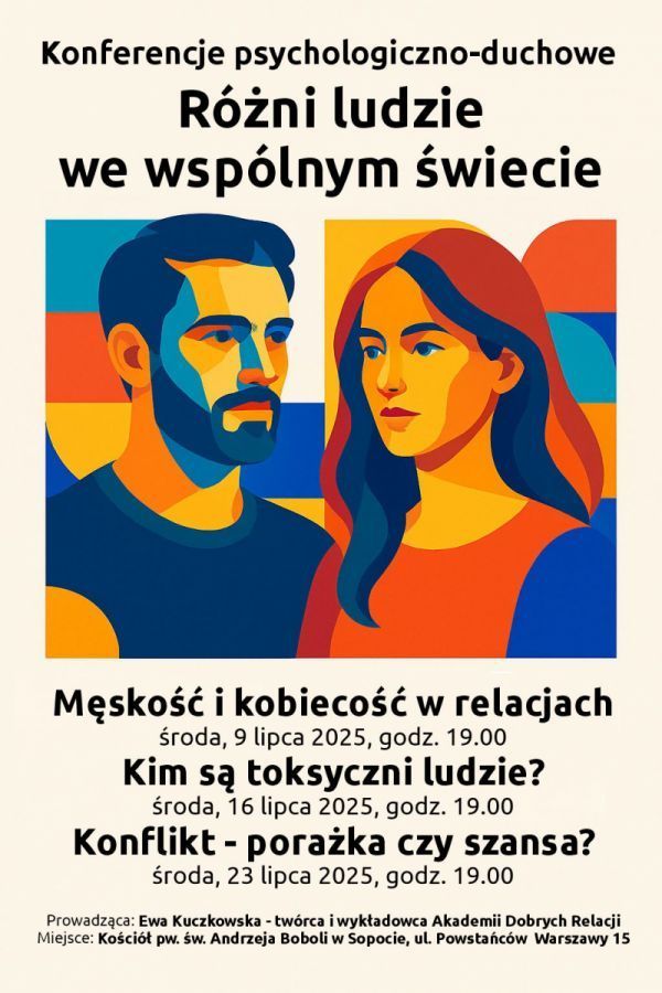 1. Męskość i kobiecość w relacjach (9 lipca 2025 r.) Dwie strony tego samego medalu. Różnice w postrzeganiu, funkcjonowaniu i potrzebach. Jak się pięknie różnić?