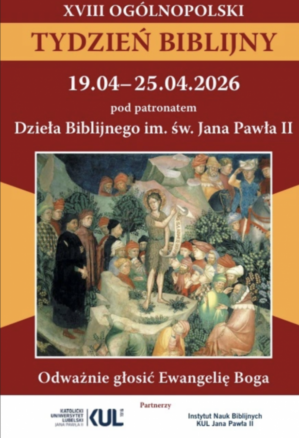 Pod hasłem „Odważnie głosić Ewangelię Boga”, od 19 do 25 kwietnia, w Kościele katolickim w Polsce już po raz 18. obchodzony będzie Ogólnopolski Tydzień Biblijny. Ma on służyć ponownemu odkryciu i pogłębieniu znaczenia Słowa Bożego w życiu Kościoła oraz w życiu każdego z nas. Zachęcamy wszystkich do osobistej i systematycznej lektury Biblii. Zachęcamy do zapoznania się ogólnodostępnymi materiałmi dostępnymi tutaj.